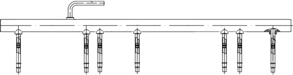 - Des limiteurs de débit différents peuvent être installés dans chaque branche pour équilibrer les serpentins.