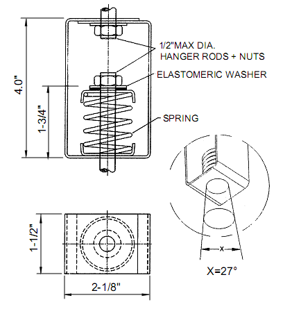 | Isolation Spring Hanger | SH-012 | ea. | 66 | 0.75 | SILVER | RED | ||